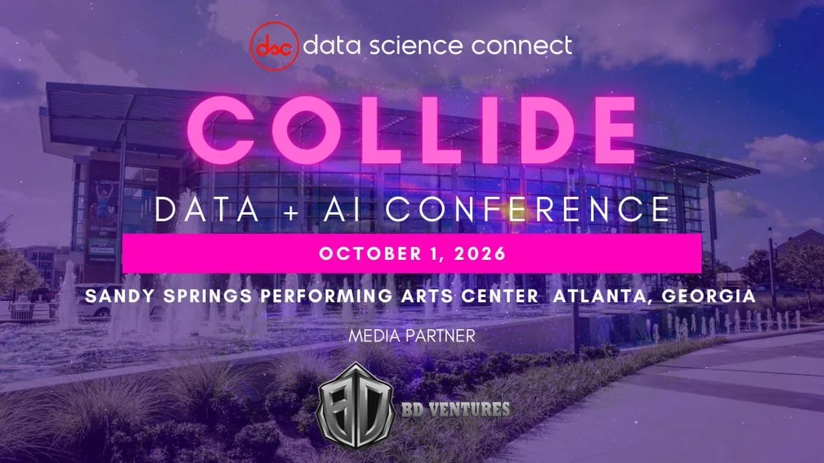 The COLLIDE Data + AI Conference is a one-day, in-person data and artificial intelligence event happening October 1, 2026 at the Sandy Springs Performing Arts Center. It’s billed as the South’s largest enterprise-focused data & AI conference, bringing together data leaders, AI practitioners, and Fortune 500 decision-makers for keynotes, breakout sessions, panel discussions, an exhibitor hall, networking receptions, and executive dinners focused on actionable strategies and real-world AI implementation. The event is ideal for senior data professionals, AI leaders, analytics executives, and practitioners who want enterprise insights and connections with peers and industry innovators. General admission “all-access” registration early-bird pricing is around $399 (with regular pricing up to $999), and limited free passes are available for qualified senior non-vendor professionals as well as media when approved.